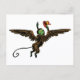 Historias clásicas de ilustracion vintage para niños, imagen de William Wallace Denslow, del libro de cuentos de la era victoriana El Maravilloso Mago de Oz de L. Frank Baum. Un mono malvado con cara verde y sosteniendo a un gorra vuela a la Bruja Malvada del mágico castillo occidental. ¡Cuidado Dorothy!