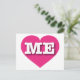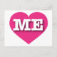 Esta postal tiene un vibrante corazón rosado caliente que contiene las letras negrita, blanca y alta del funda ME, la abreviatura oficial del estado de Maine, el estado del pino. El reverso de la postal está en blanco, esperando el texto personalizado o los sentimientos manuscritos.