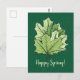 Postal de primavera con arce verde deja el arte digital con un ilustracion decorativo de hojas de primavera sobre fondo verde oscuro y el texto personalizable "¡Feliz primavera!".
