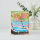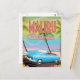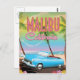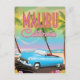 Malibu California poster de viajes de vintage de un clásico auto viejo cerca de una hermosa playa.