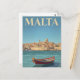 Postal Malta Harbor Vintage Travel Art