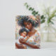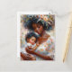 Esta postal suave e hiperfeminiana presenta a una hermosa madre y un lindo niño con aspecto afroamericano. Son de piel marrón y tienen el pelo rizado y están rodeadas de elementos florales en un retrato impresionista de pintura al óleo. Este arte florido, rico en melaninas, exuda amor materno y paz, haciéndolo perfecto para la decoración de la guardería, el Día de la Madre o, en general, para celebrar la maternidad negra.