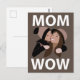 Postales para mamá y niños diseñadas por Nisha Prabhu. Presenta un ilustracion de diseño digital original de madre e hijo con tipografía "MOM WOW". Captura el vínculo entre madre e hijo con esta conmovedora postal que presenta un hermoso diseño que celebra el amor y la conexión que comparten una madre y su pequeña. Perfecto para mandar un mensaje reflexivo a una mamá especial en tu vida, esta postal seguro que calentará los corazones y traerá sonrisas. Aprovecha el amor con este atractivo diseño, disponible exclusivamente en Cutehomegifts Zazzle.