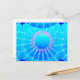 Postcard en un patrón de mandala abstracta en un gradiente satinado de discos superpuestos centrados alrededor de una rueda de estrellas - tonos turquesa / pavo real y agua, acentuados con violeta suave