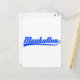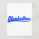 Manhattan, Nueva York, escrito con un swash (cola). Fuentes en blanco y azul. Diseño de texto original.