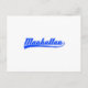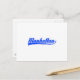 Manhattan, Nueva York, escrito con un swash (cola). Fuentes en blanco y azul. Diseño de texto original.