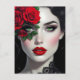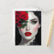Postal Mantener en contacto | Mujer hermosa con rosa roja