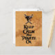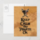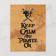 Parodia de los populares mantengan la calma y sigan con las citas, ¡pero para los piratas! Mantén La Calma Y La Piratería. Pirate Skull y cruzó espadas con un mapa pirata vintage del fondo de los Cayos de Florida.