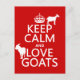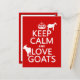 El diseño dice "Mantengan la calma y el amor a las cabras". Dos siluetas de cabra sobre las letras. Es un diseño hermoso, genial para cualquiera que trabaje con cabras, tenga cabras o solo ame cabras.