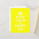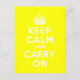 Mantener la calma y continuar con el diseño de estilo vintage en un color de fondo amarillo arcoiris.