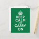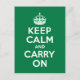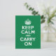 Mantener la calma y continuar con el diseño de estilo vintage sobre el verde arcoiris brillante.