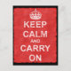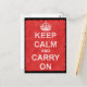 Este popular eslogan poster de propaganda de la Segunda Guerra Mundial dice: "Mantengan la calma y continúen". Aquí, se le da una mirada vintage y antigua a través del uso de texto angustiado y un fondo gastado y desgastado de color gris rojo. Esta es una postal de moda para todo aquel que ame la historia y busca un dicho inspirador y motivacional clásico. También disponible en otros artículos en el enlace de la tienda anterior.