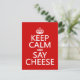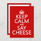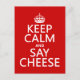 Se lee Keep Calm and Say Cheese, en el estilo del clásico poster mantener la calma. Es un hermoso diseño simple, que hace una maravillosa gama de regalos para fotógrafos, tanto profesionales como aficionados.