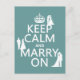 Este es el clásico poster de guerra "Mantén la calma y sigue adelante" reformulado para "Mantente la calma y cásate". He mantenido la corona tradicional en la parte superior y he agregado las siluetas de novias y novios parados en las cartas. Es un bonito diseño con un toque de nostalgia. Hace bellas tarjetas e invitaciones o regalos para cualquier día especial. (los diseños de las parejas homosexuales también están disponibles en mi tienda.) He puesto esto en un fondo azul pálido, pero puedes cambiarlo muy fácilmente. Golpear "Personalizar" y luego "editar", y podrás cambiar a CUALQUIER color que prefieras. Personalización/Personalización: Ver mi tienda para este diseño en toda una gama de productos, y mucho más mantener diseños tranquilos. Si te gusta alguno de mis diseños pero prefieres un cambio de redacción o decoración, por favor contáctame. Usa el enlace de arriba, o visita mi tienda y usa el enlace "enviar mensaje", sin obligación de comprar.