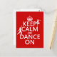 Se lee Keep Calm and Dance On, al estilo del clásico poster de calma. Hay dos bailarinas bailando encima de las cartas. Es un diseño hermoso, que hace grandes regalos para profesores de baile, grupos de baile o a cualquiera que le guste bailar.