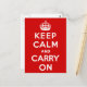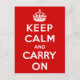 Keep Calm and Carry On fue un poster producido por el gobierno británico en 1939 durante el inicio de la Segunda Guerra Mundial, con la intención de elevar la moral del público británico bajo la amenaza de una invasión inminente. Era poco conocido y nunca se usó. El poster fue redescubierto en el año 2000 y ha sido republicado por varias empresas del sector privado y utilizado como tema decorativo para una serie de otros productos. Sólo hay dos ejemplos conocidos de sobrevivientes del poster en el dominio público.
