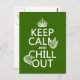 Este es el diseño clásico retrabajado para mantener la calma y salir. Hay dos manchas colgando de las palabras. Diseño perfecto para quien sufre de estrés y necesita un recordatorio para simplemente colgar. También es genial para cualquiera que ame las perdeces. Puede cambiar el color de fondo muy fácilmente, sólo pulse personalizar. O, si quieres ver el diseño en un producto diferente, o quieres cambios, ponte en contacto conmigo a través de mi tienda, y veré si puedo ayudar. Gracias por buscar.