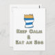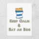 Para los amantes de los huevos, el diseño "Keep Calm and Eat an Egg" muestra un huevo abierto en un huevo estriado azul con el mensaje "Keep Calm" debajo. Un divertido diseño de huevo para la gente que tranquilamente disfruta comiendo huevos.