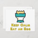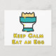 Para los amantes de los huevos, el diseño "Keep Calm and Eat an Egg" muestra un huevo abierto en un huevo estriado azul con el mensaje "Keep Calm" debajo. Un divertido diseño de huevo para la gente que tranquilamente disfruta comiendo huevos.