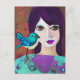 Dile "hola" a una amiga con esta linda tarjeta de arte abstracto con una chica y su pájaro en arte aéreo abstracto verde azulado y púrpura.