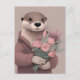 Reservados todos los derechos © Angelandspot Una nutria adorable contiene un ramo de flores