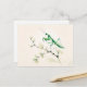 Minimalista pintura de tinta china moderna de una mantis rezando en una hoja de ginkgo.