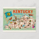 Encantador mapa postal ilustrado antiguo del estado de Kentucky.