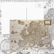 Mapa del mundo antiguo del ilustracion vintage con los diferentes países del continente europeo y algunas zonas circundantes de África, Asia y el Océano Atlántico, c. 1617. Esta gráfica está rodeada de escenas de la ciudad y de personas vestidas con trajes tradicionales. Cartografía de Willem Jansz Blaeu (1571-1638). Willem Janszoon Blaeu era un cartógrafo holandés, hacedor de atlas y editor.