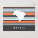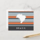 Diseño moderno del mapa de Brasil en blanco y en texto personalizado, celebrar su orgullo brasileño. Antecedentes en franjas; azul, gris, naranja y blanco.