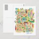 Postal Mapa de viajes amarillo ilustrado de Kuala Lumpur