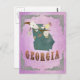 Postal Mapa del estado de la vieja Georgia - Morado de uv