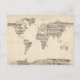 Postal Mapa del Mapa Mundial de la Música de Hoja Antigua