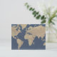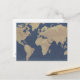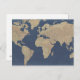 Postal Mapa del mundo del oro y el azul