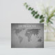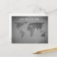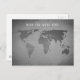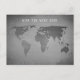 Mapa divertido del mundo en blanco y negro con texto que dice 'desearía estar aquí'