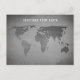 Gracioso mapa del mundo blanco y negro con texto que dice 'saludos desde la tierra'