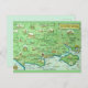 Hermoso mapa ilustrado vintage de Hampshire Inglaterra reutilizado en una nueva postal.