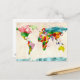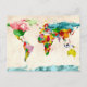 Mapa del mundo con cada país mostrado en un color diferente. Los países se muestran sobre una base pintada de acuarela.