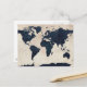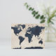 Mapa del mundo de estilo grunge angustiado en la Marina y Beige/Crema.