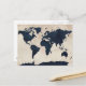 Mapa del mundo de estilo grunge angustiado en la Marina y Beige/Crema.