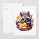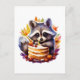 Postal Mapache de otoño con pastel de cumpleaños número 1