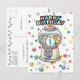 Máquina de chicles divertida y linda, Tarjeta postal personalizada para el primer cumpleaños de un niño.