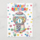 Máquina de chicles divertida, linda y caprichosa, tarjeta postal personalizada para el primer cumpleaños de un niño.