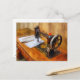 Diseños de Susan Savad — A todo aquel que tenga interés en la historia o la costura le encantaría esta vintage máquina de coser de cinta rodante con el toque de color vívido de la chispa de hilo naranja.