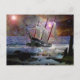 Mar incesante. -Postal. Fotografía manipulada. Un barco es destrozado por el mar implacable. Enfrentado a un hermoso cielo estrellado.