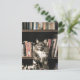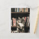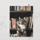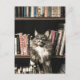 Gato sentado en una estantería entre libros Postrcosechando tarjeta postal