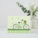 Con una cesta llena de rocas de champú, todo en verde, este diseño de bicicleta fresca es una forma divertida de enviar un saludo rápido.