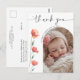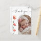 Expresa gratitud a aquellos que hicieron tu baby shower verdaderamente especial con nuestra tarjeta de agradecimiento bellamente diseñada. Esta elegante tarjeta presenta un fondo blanco atemporal, preparando el escenario para la foto de tu bebé enmarcada dentro de un delicado arco de acuarela adornado con vibrantes flores rojas. En la parte superior del arco, un sincero "Gracias" está escrito en una sofisticada letra moderna, añadiendo un toque de calidez y encanto personal. Debajo de la foto, el nombre de tu bebé se muestra en una letra refinada y elegante. ¡Presiona el botón para personalizar la tarjeta, te encantará!