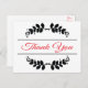¡Diga Gracias con estilo! Esta encantadora postal de agradecimiento presenta un marco negro de hojas florales con un contraste de rojo vibrante gracias al saludo resaltado contra un fondo blanco y nítido. Las postales personalizados son la alternativa económica a las tarjetas de felicitación cuando se desea enviar una nota de agradecimiento. Genial por... Bodas, duchas de novias, fiestas Empresas Mostrar gratitud a amigos y familiares por los regalos Adjuntar cestas de regalo y bolsas de gafas Actos de bondad Otras divertidas Gracias postales que pueden disfrutar... com