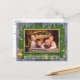 Una atractiva y atractiva tarjeta de Navidades con la foto de tu familia realzada por un glamoroso marco dorado sobre una masa de pino y fondo de madera templada. Tu texto en la parte inferior de un Navidad rojo fácil de leer sobre un cartel de pantalla. Puede personalizar el saludo de los Navidades de fondo, su dirección de retorno y sus nombres en script cerca de la parte inferior con espacio para que añada una nota personal manuscrita.