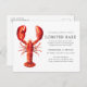 Tarjetas postales personalizadas de color rojo carmesí con tema de langosta para su próxima fiesta de Horneado de Langosta o evento de mariscos. Cuenta con una ilustración de estilo acuarela de una langosta roja. Alrededor de esto hay espacios para la información de su evento único.